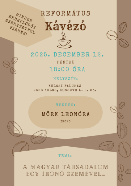 A Református Kávézó bensőséges irodalmi estje várja az olvasás szerelmeseit, egy kellemes beszélgetéssel és finom kávéval kísérve.